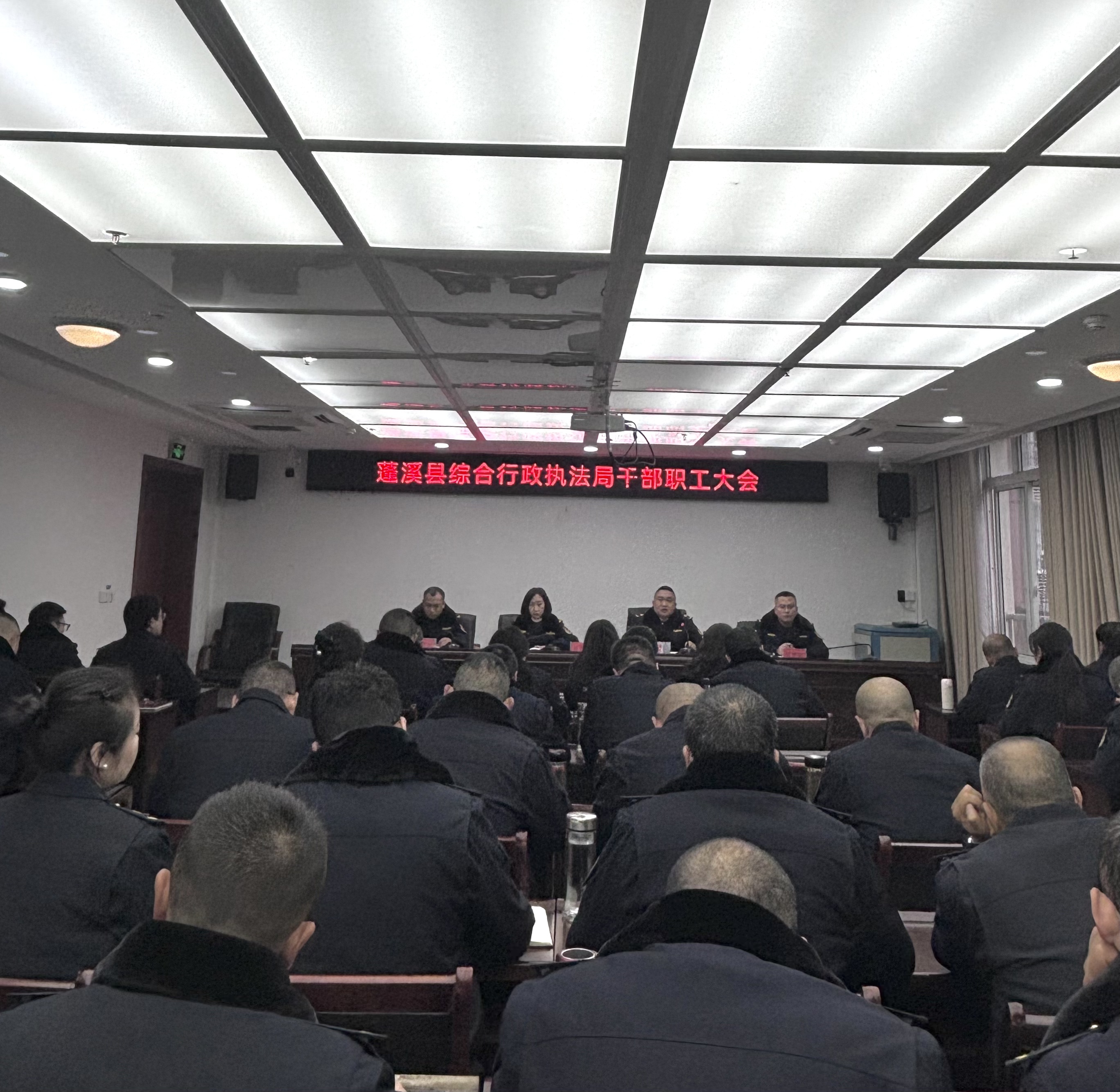1月22日上午,蓬溪县综合行政执法局召开2025年度全体干部职工大会,会议回顾总结2024年工作成效,部署安排2025年重点任务,动员全局上下坚持严格纪律、顶格标准,保持满格状态,全力推动综合执法事业高质量发展。局领导班子及局属各股室队全体干部职工参加会议。