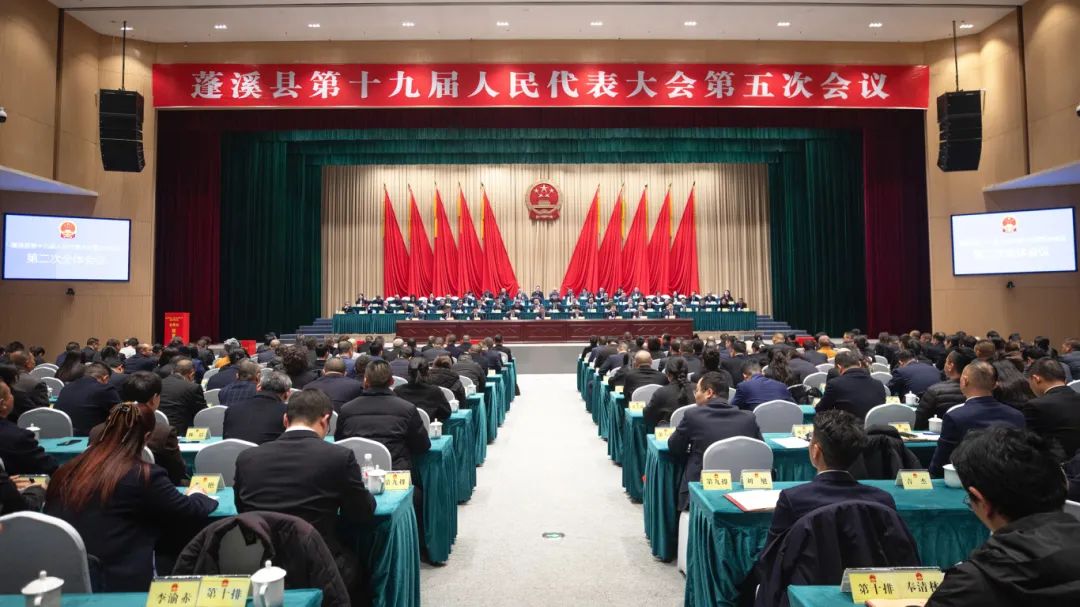 2月26日,蓬溪县第十九届人民代表大会第五次会议圆满完成各项议程后在市民中心闭幕。大会应到代表272人,闭幕会实到代表250人,符合法定人数。本次会议执行主席黄亚军、杨帆、杨军、何云峰、王勇、肖伟、张吉华、刘定华、郭伟在主席台前排就座。县委书记黄亚军主持会议。县委副书记、县长吴红彬,县委副书记张淀渲出席并在主席台就座。