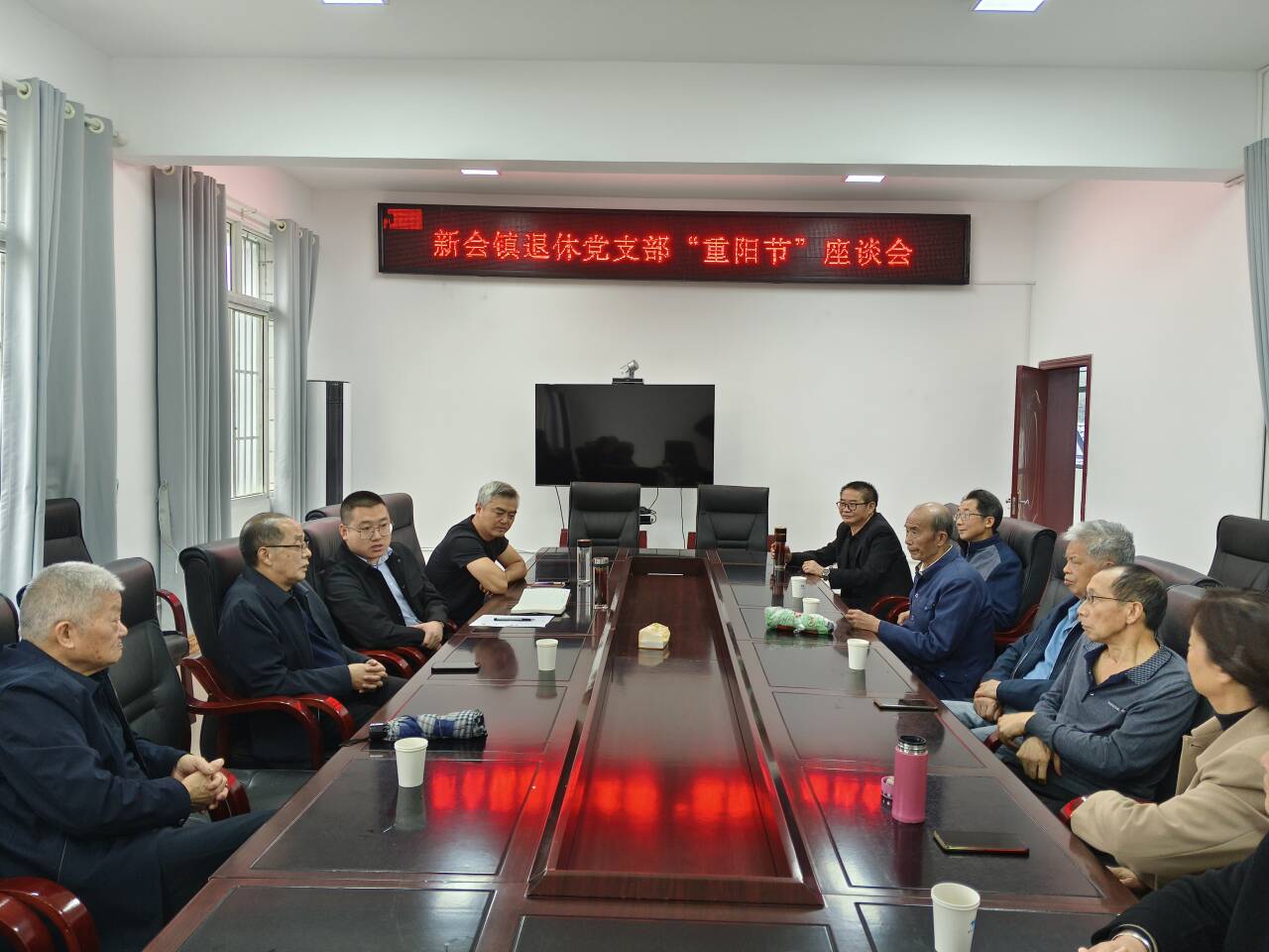 金秋送爽黄花香,登高望远岁重阳。重阳节是中华民族的传统节日,为弘扬敬老爱老的传统美德,10月11日,新会镇退休支部组织召开了新会镇退休干部“重阳节”座谈会,为退休老干部送上节日诚挚的祝福与问候。新会镇党委副书记、镇长肖力源同志与退休老干部亲切交谈,详细询问他们的身体状况、生活起居等情况,向老干部们介绍近期工作情况及所取得的成就,同时也由衷感谢老干部们为新会发展做出的贡献,也希望他们继续发挥自己的政治优势、威望优势和作风优势,一如既往关心、支持新会发展,为新会工作高质量发展凝聚智慧、汇聚力量。
