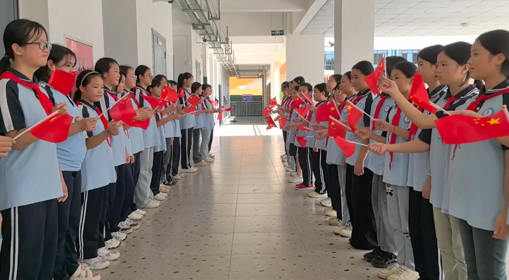 “五星红旗,你是我的骄傲;五星红旗,我为你自豪……”当歌曲进入副歌部分,全场师生的情绪被推向高潮。全校师生都挺直了脊梁,用最洪亮的声音唱出心中的热爱。不少同学眼中闪烁着激动的光芒,有的轻轻摇晃着国旗,有的跟着节奏拍手,现场回荡着激昂的歌声与热烈的掌声,爱国之情在每个人的心中激荡、升腾。