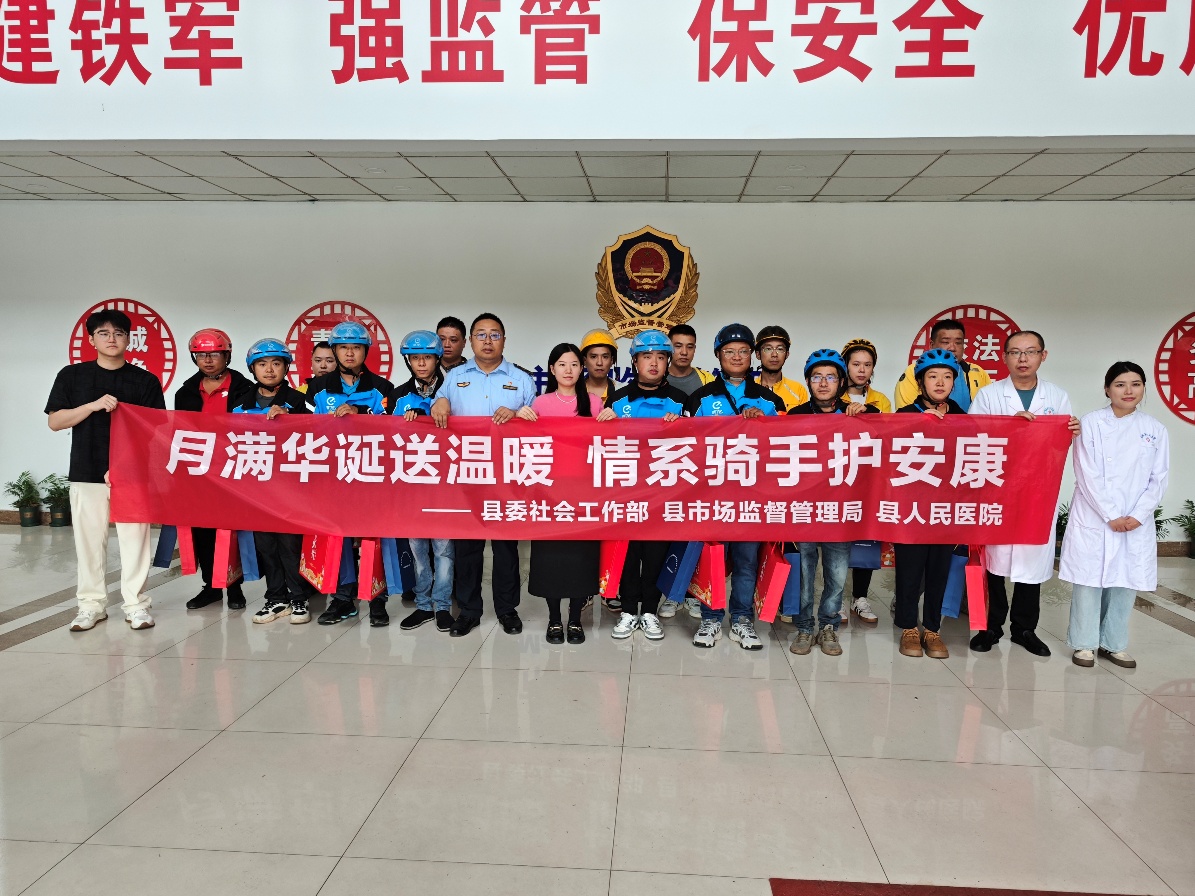 月满中秋意,情暖骑手心。9月28日,蓬溪县市场监管局携手县委社会工作部、县人民医院联合开展“月满华诞送温暖·情系骑手护安康”国庆中秋慰问活动,为美团、饿了么和京东网约配送员送上节日关怀和健康体检,切实关心关爱新就业群体。