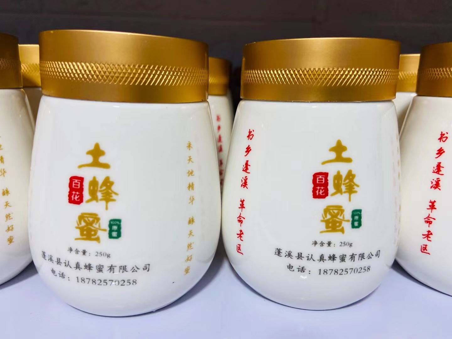 一年取一次的百花土蜂蜜,集百花精华,自然成熟原蜜采撷酿造。不加工,不添加任何添加剂,富含人体需要的多种维生素、矿物质、活性酶、黄酮等物质,芬芳馥郁,甘香醇美,深受消费者喜爱。产品容器采用陶瓷罐容器,能长期更好地保证蜂蜜本身营养成分不流失。2020年7月获得四川省农业农村厅颁发的“无公害农产品”证书;2022年12月四川省扶贫开发协会授予本产品“天府乡村”公益品牌。