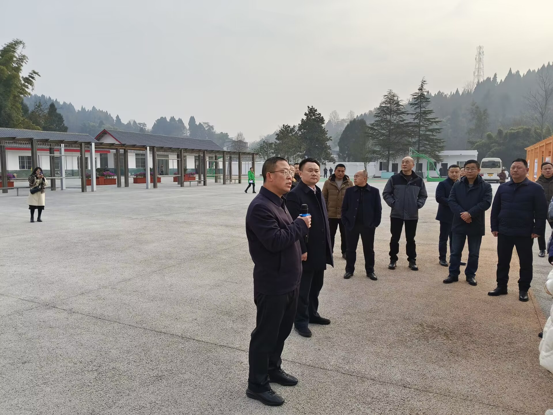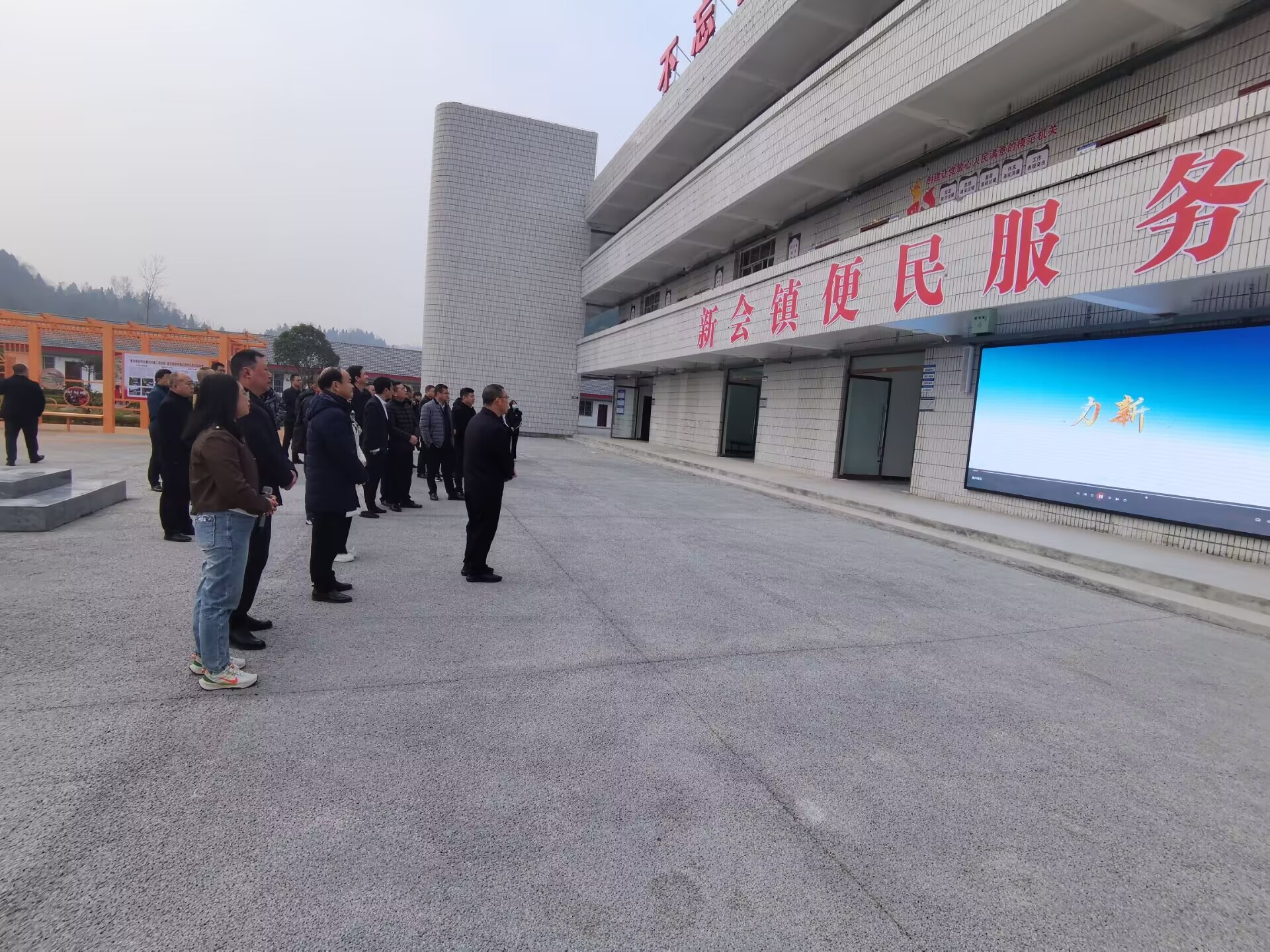 2023年12月22日上午县委书记黄亚军、县长吴红彬一行带队到新会镇政府新办公楼查看建设完工情况及全县党务工作重点任务推进会