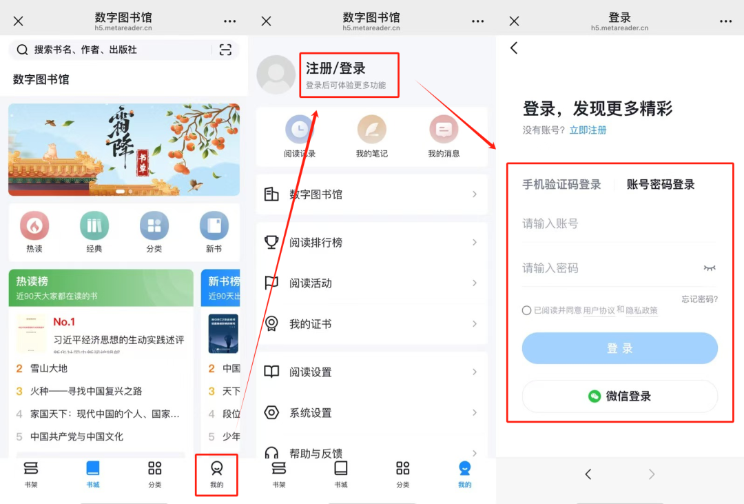 注:首次登陆请在图书馆所在市/区县进行注册,若提示“不在允许注册的地理范围内”,需使用通行码注册,通行码:tc06yg;